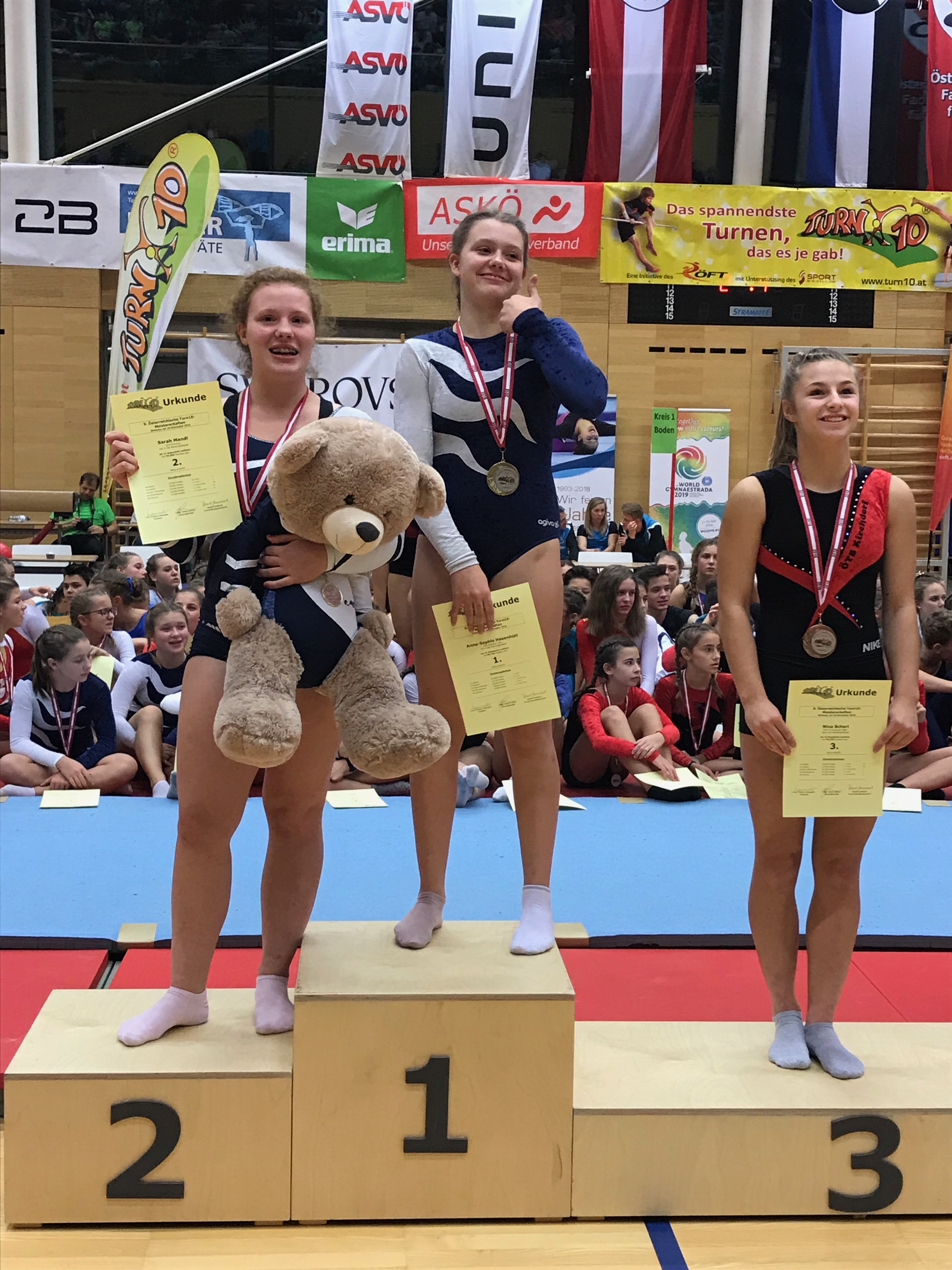 2018 ÖTB-Turn10 Bundesmeisterschaft: Anne-Sophie(AK16) mit Gold und Melanie(AK10) mit